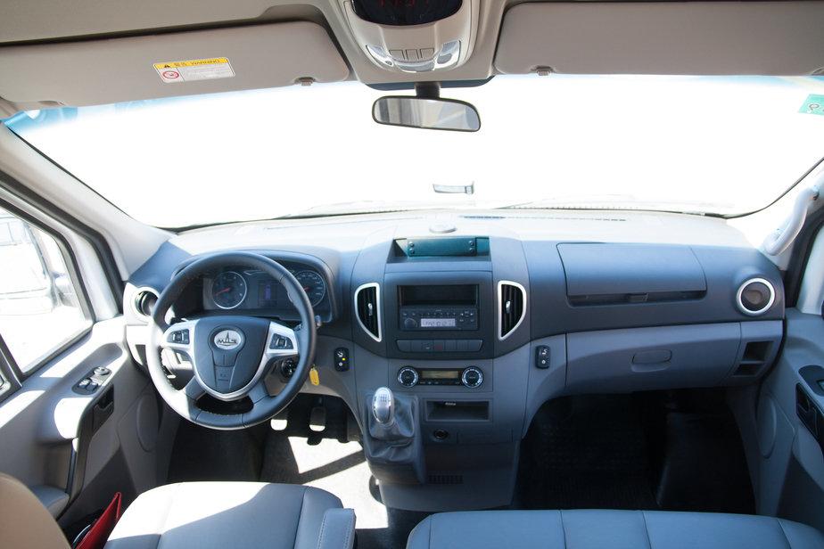 Микроавтобус выделяют достаточно значительные габариты и вместимость. Длина — 6 метров, ширина — 2,1, высота — 2,65 м, а колесная база — 3,57 м. Салон можно выбрать самостоятельно — от грузового к пассажирскому с 16 сиденьями, не считая места водителя. Для пассажиров установлены сдвижные двери. В базовый комплект входят комфортабельные сиденья с регулировкой наклона спинки, кондиционер, круиз-контроль и магнитола. Предусмотрены также задний парктроник и электронная система распределения тормозных усилий.