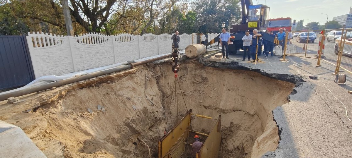 Он пояснил, что на выходных после сильнейшего ливня обрушился асфальт. Местные жители сообщили об этом «Брестводоканалу». Специалисты обнаружили серьезную проблему на трубопроводе еще 70-х годов постройки, который не справлялся со своими функциями, а сильные дожди лишь спровоцировали аварию.