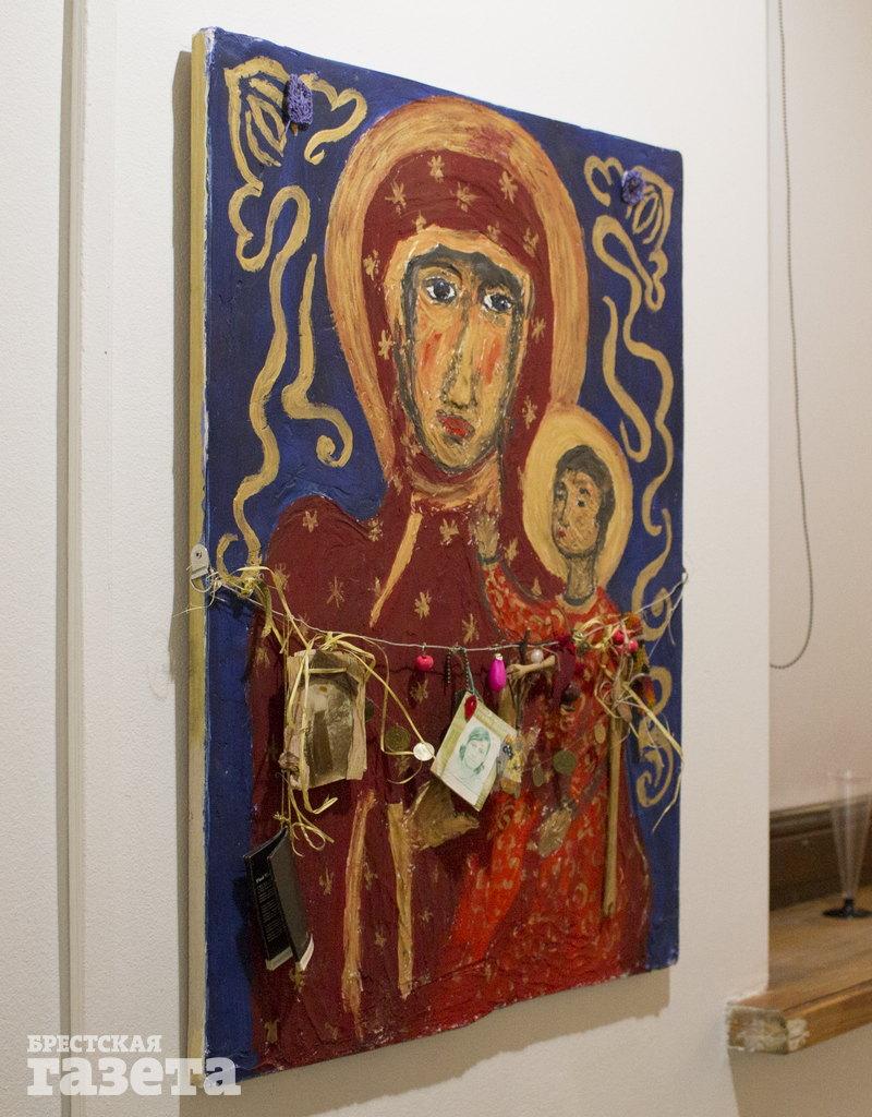 Единственная представительница Брестской области — художница Валентина Шохалевич из Кобрина — представила на выставке двух Мадонн. «Когда я собирала проект, я понимала, что мне будет сложно обойти архетип Мадонны, если я говорю о материнстве, — рассказала Михальчик. — Хотелось избежать клише. Мне показалось, что Мадонны Валентины подходят идеально. Они очень трогательные, человечные».