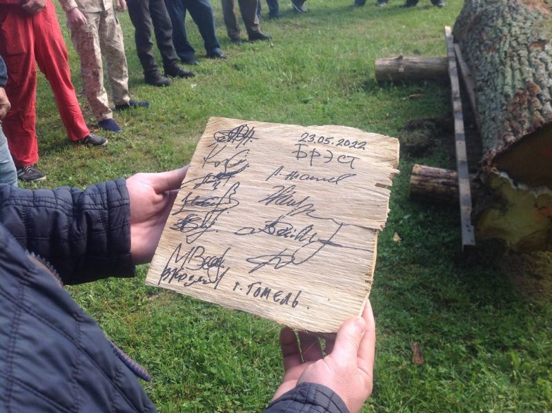 Мероприятие открылось традиционным ритуалом «Першая зарубка», в ходе которой старший по возрасту мастер топором вырубил кусок дерева, на котором оставили свои автографы участники пленэра. Об этом в своем телеграм-канале сообщил председатель Брестского горисполкома Александр Рогачук.