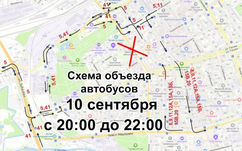 В связи с показом спектакля будет временно запрещено движение транспортных средств по улице Ленина на участке дороги от улицы Мицкевича до улицы Гоголя.