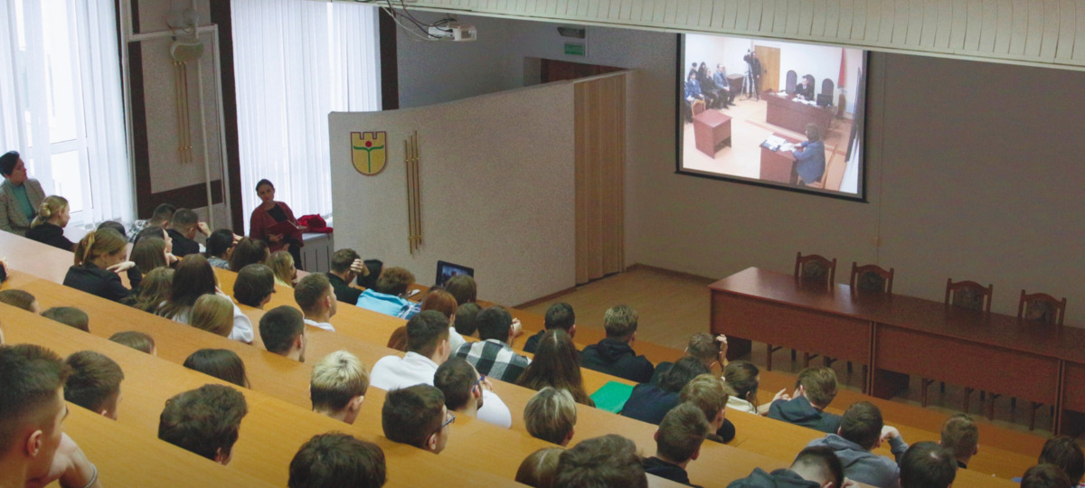 Один из студентов рассказал изданию, что за процессом наблюдали десятки студентов, которых разделили на две аудитории: одна из них оборудована под зал судебных заседаний, другая — поточная. В первой студенты из разных факультетов наблюдали за процессом лично, во второй — смотрели онлайн-трансляцию. Вел процесс судья суда Ленинского района Бреста Александр Семенчук.
