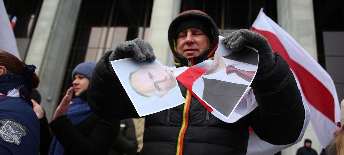 Посмотрите, как в Минске протестующие против глубокой интеграции с Россией рвали портреты Путина (видео)