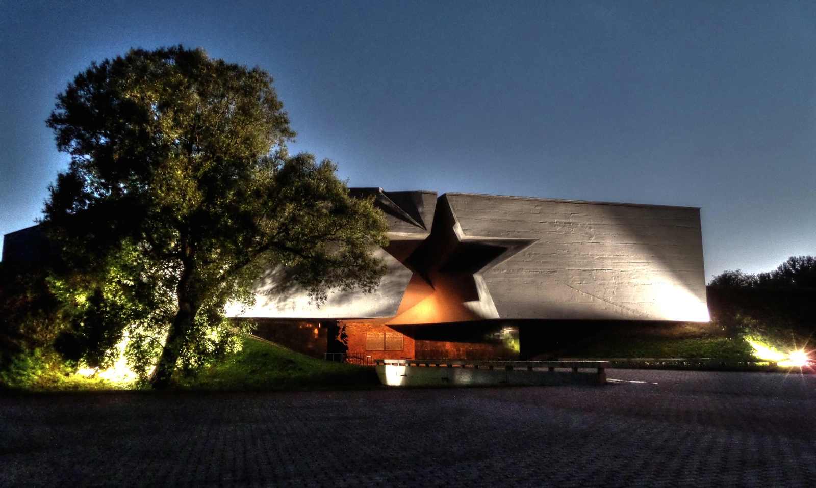 Главный вход в мемориальный комплекс «Брестская крепость-герой» представляет собой врезанный в вал железобетонный параллелепипед с высеченной в нем пятиконечной звездой. Проходя под ней, можно услышать позывные центральной радиостанции Советского Союза — мелодию «Песня о Родине», голос Юрия Левитана, который оповещает о вероломном нападении фашистской Германии на СССР, песню «Священная война», звуки бомбежки и стрельбы.