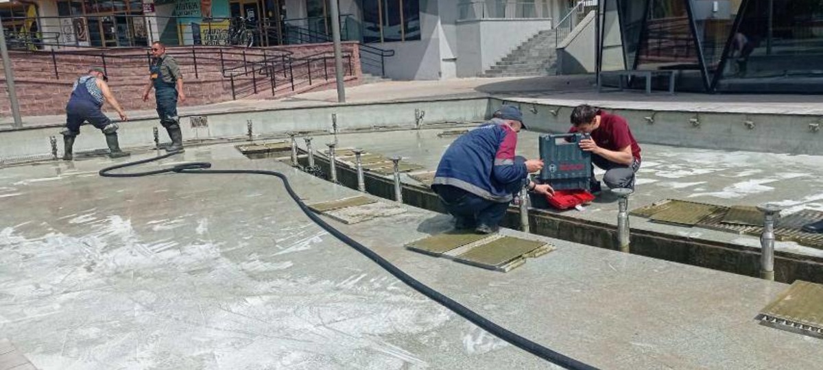 Фонтан на Советской отключили из-за ремонта форсунок, которые мусором забили дети