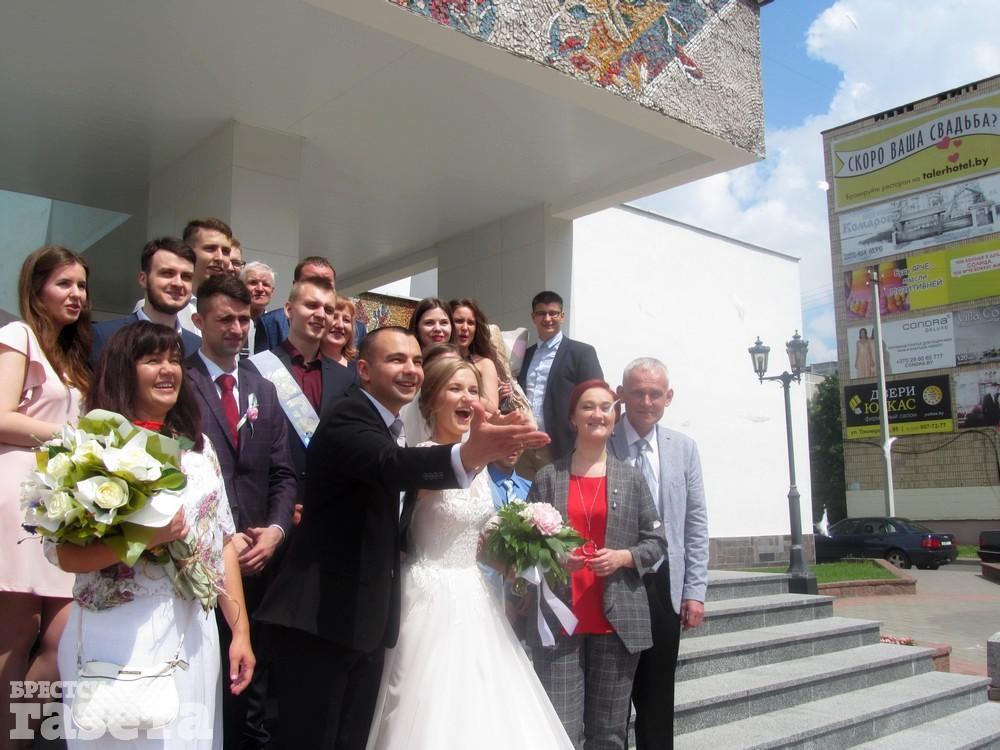 Брестчане Евгений и Екатерина Иванкины вместе уже полтора года. Он – программист, она – работает в банке. Пара расписалась в отделе ЗАГС Брестского горисполкома 7 июня. В этот день поздравить их пришли самые близкие друзья и родные.