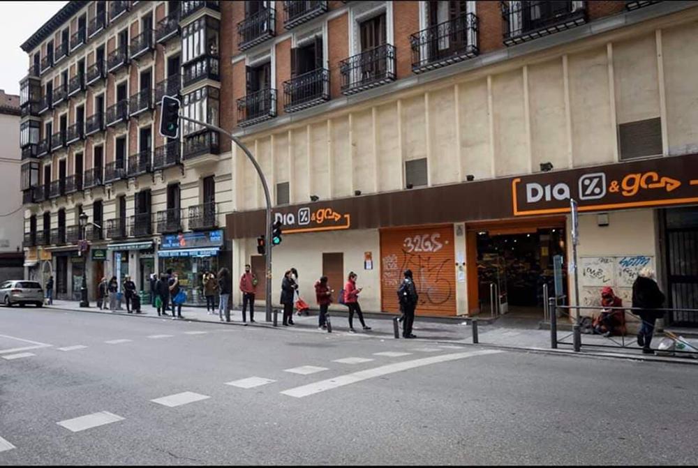 Мадрид, очередь у входа в магазин.