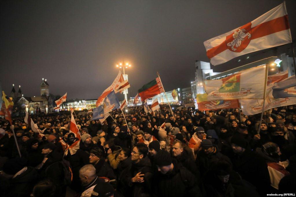 Напомним, акции протеста против «углубленной интеграции» с Россией начались  в Беларуси в канун 20-летия подписания Договора о создании Союзного государства, 7 декабря. На протяжении двух дней люди выходили на Октябрьскую площадь в Минске. Они рвали портреты Путина, держали плакаты, бело-красно-белые флаги и скандировали: «Ніякіх саюзаў з імперскай Расіяй!», «Жыве Беларусь!», «Незалежнасць!».