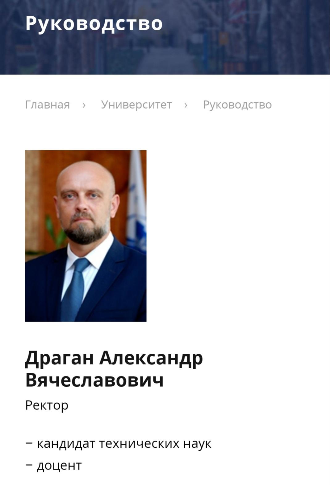 На официальном сайте БрГТУ Александр Драган тоже обозначен как ректор университета. На эту должность 22 мая 2018 года его назначил  Александр Лукашенко.