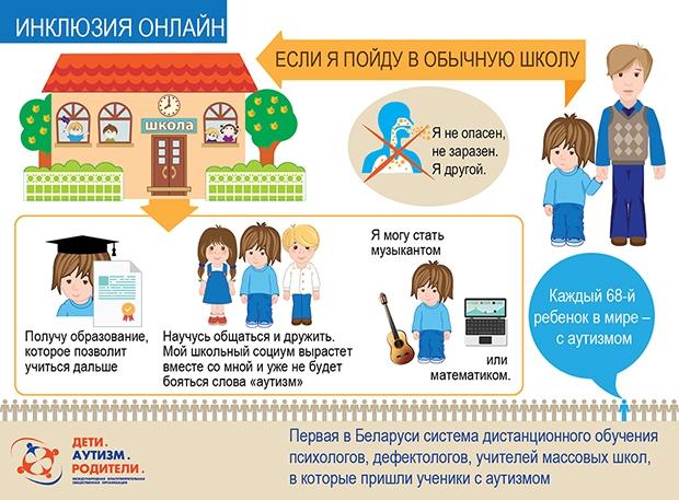 В последние годы мы, родители детей с аутизмом, в партнерстве с системой образования создаем в обычных школах классы для детей с аутизмом, которые ориентируются на принятую в мире инклюзивную модель. А в сентябре в Минске появилась школа с инклюзивными условиями обучения для детей с аутизмом разного возраста.