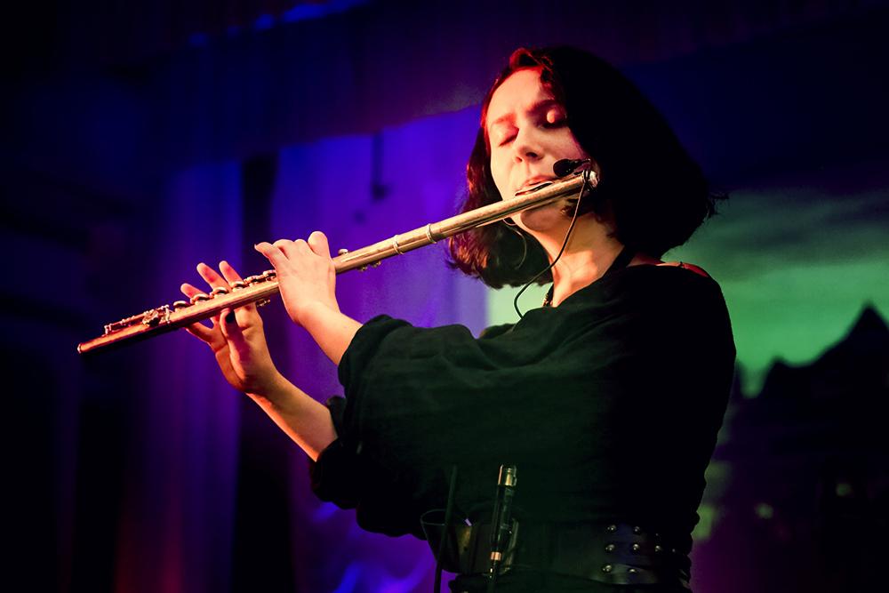 Оля: Сначала мы играли что-то средневековое в акустике: волынки, флейты-жалейки, барабан и струнные. Костюмы были попыткой реконструкции. Сейчас играем более роковый вариант.