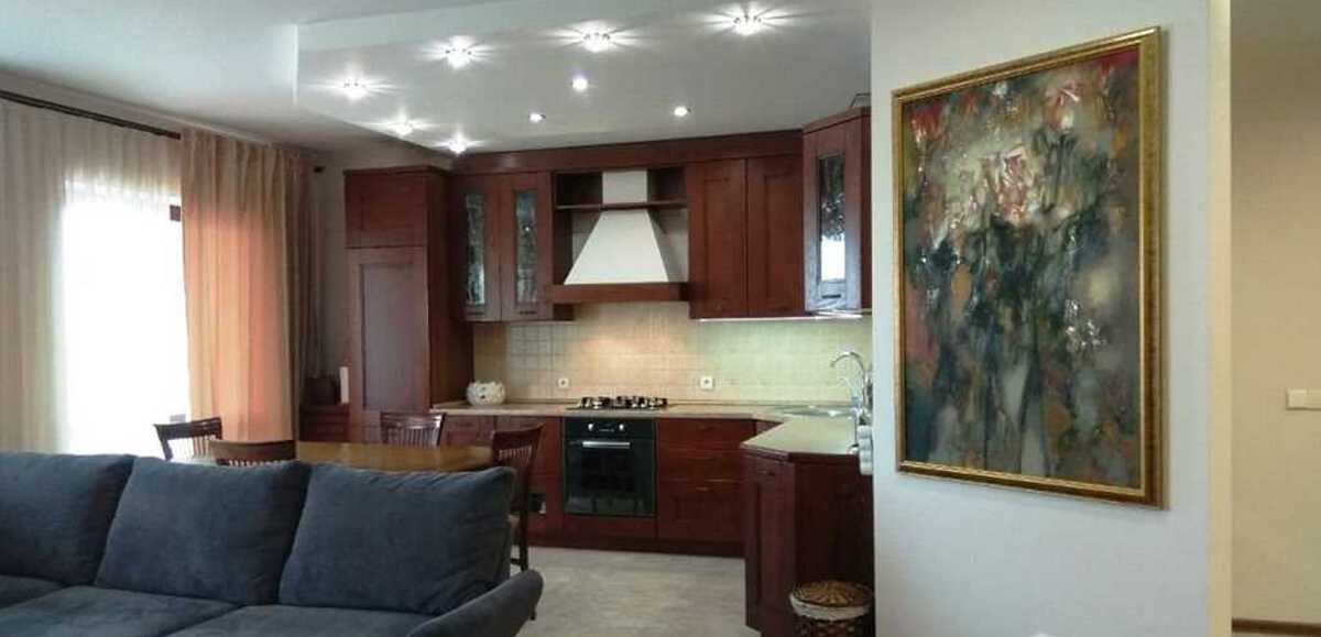 Квартира находится на 10 этаже кирпичной десятиэтажки 1997 года постройки. Лоджия застеклена, потолки 2,5 метра, на полу — ламинат и новая плитка, внутренние двери из массива дерева, а входные — металлические. Потолки натяжные, кухня — встроенная.