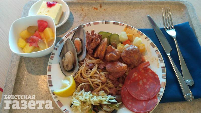 Еда на корабле вкусная. Нам повезло: мы питались в пассажирском буфете, где был шведский стол и каждый день разная кухня. Сегодня итальянская, завтра французская, послезавтра классическая британская. Был даже ростбиф из мяса по-русски. Буфет был открыт с 7 утра до часа ночи. Но было правило: первые 48 часов круиза ты должен есть в столовой для персонала.