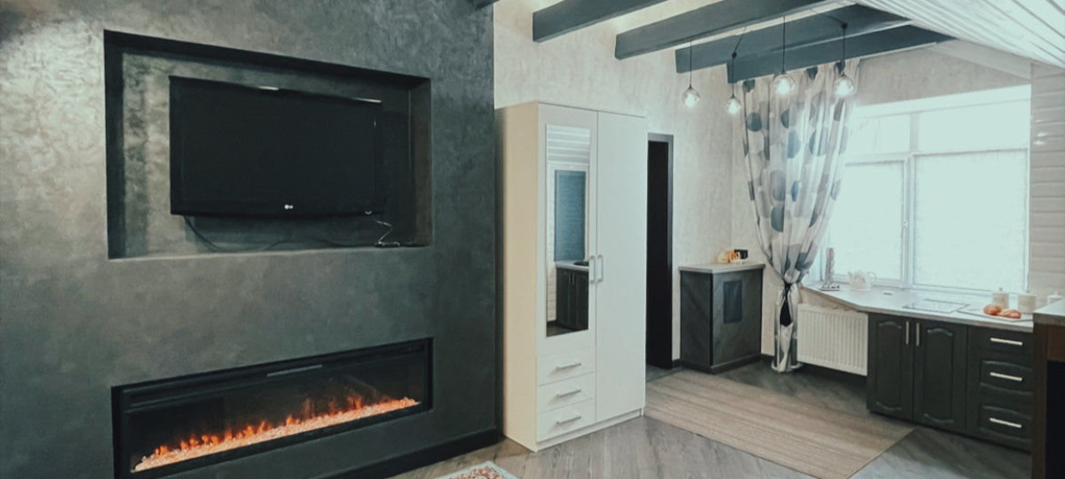 К дизайну жилья вопросов нет. Квартира выглядит очень стильно: черно-белые тона и необычные аксессуары серебристого цвета. В гостиной даже есть электрокамин. Эта деталь прибавляет 100500 очков к уюту.