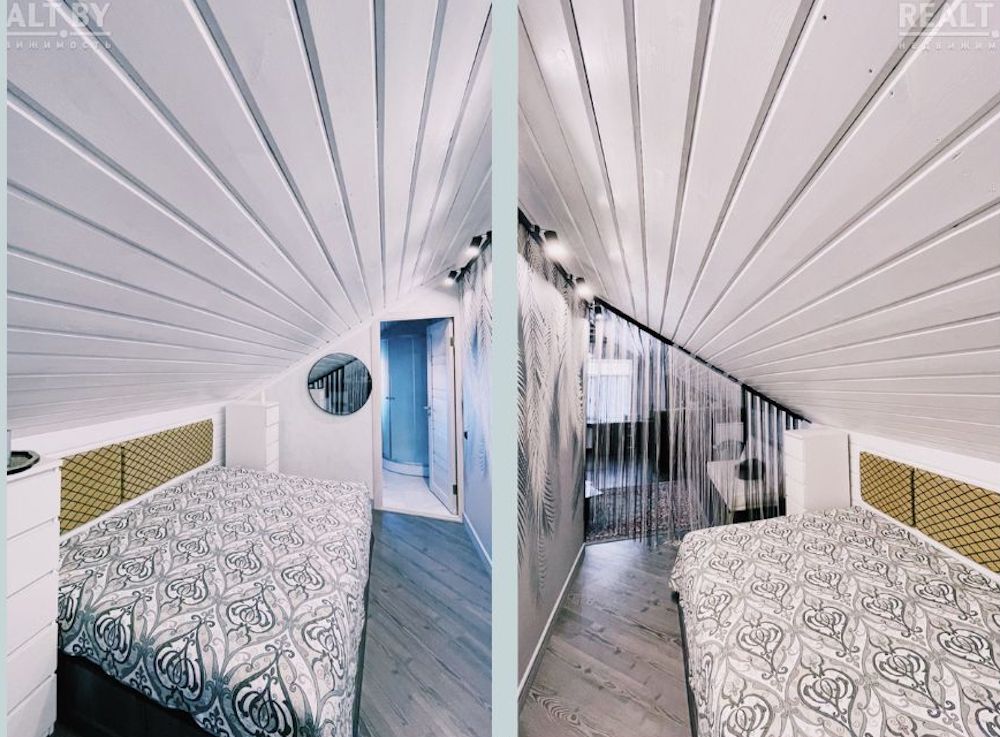 Необычная квартира находится в самом сердце города — на улице Советской. Речь о двухэтажном доме 1950 года постройки. Судя по фото, квартира сдается в мансардном этаже. В ней всего одна комната, разделенная на зоны занавеской. Таким образом в узком пространстве есть кухня, совмещенная с гостиной, спальня и санузел. Жилая зона занимает всего 36 м², а общая площадь квартиры — 42 м².