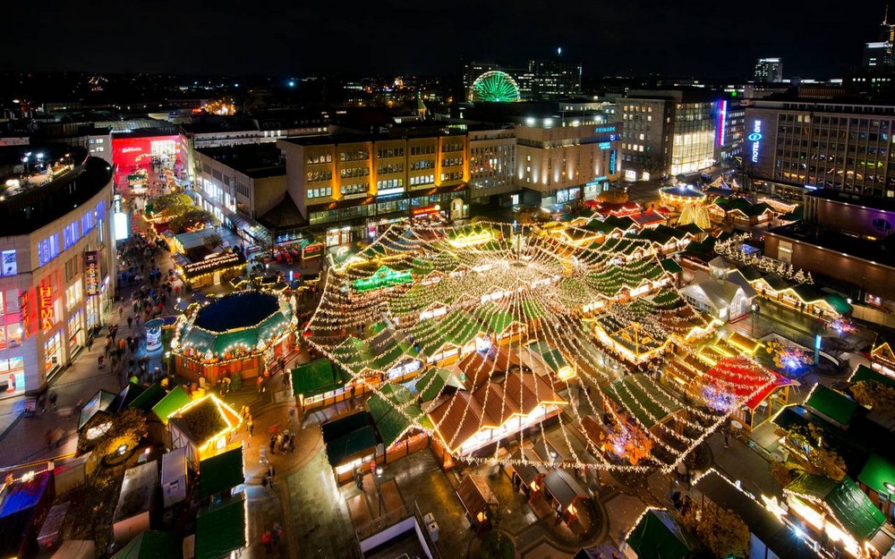 Романтическая атмосфера, наполненная весельем, и сладкий запах пряников и жареного миндаля разносятся по всему Дюссельдорфу. Ярмарки манят изделиями ручной работы, старым городским рынком и деликатесами. Весь центр Дюссельдорфа превращается в рождественский рай, усаженный сотнями елок.