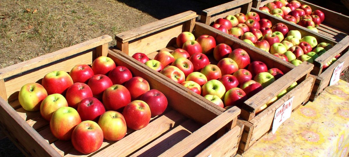 Ящики, яблоки, урожай
